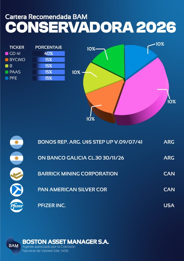 Si bien brindamos un asesoramiento personalizado para los intereses, riesgos y objetivos de cada cliente, tenemos determinadas recomendaciones generales que queremos compartir a través de nuestra cartera recomendada para perfiles Conservadores para conservar estos títulos en cartera durante el 2026.