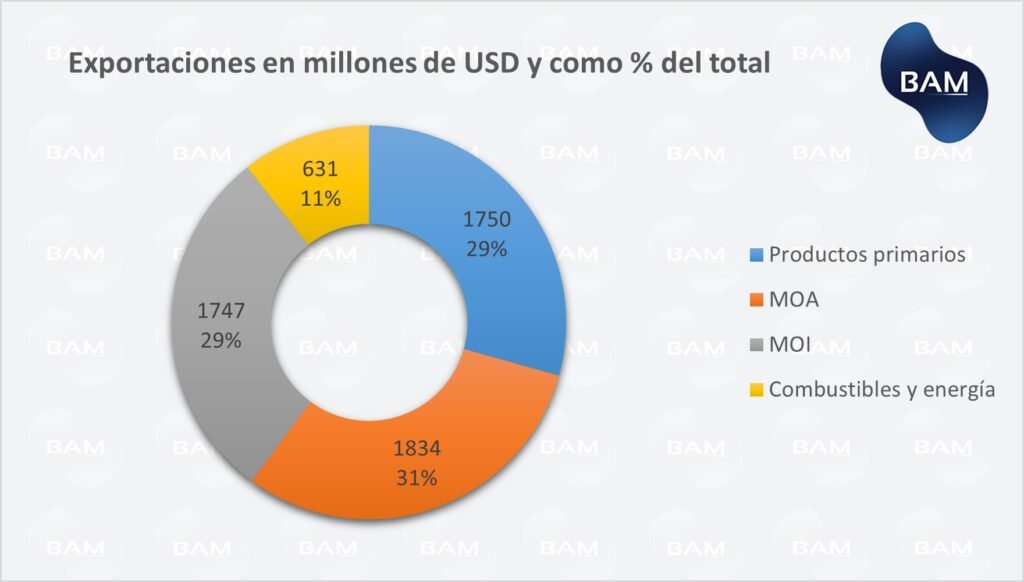 En términos acumulados, las exportaciones alcanzaron US$13.208 millones (+9,6% i.a.), mientras que las importaciones totalizaron US$10.231 millones (-11,9% i.a.), lo que implica un superávit comercial cercano a US$2.775 millones, mucho mayor alos US$370 M registrado en el acumulado del año anterior. Este resultado no responde a una expansión generalizada de la economía, sino más bien a una combinación de mejora en sectores exportadores específicos y debilidad persistente de la demanda interna.
