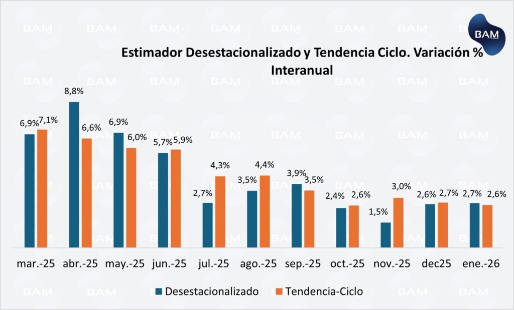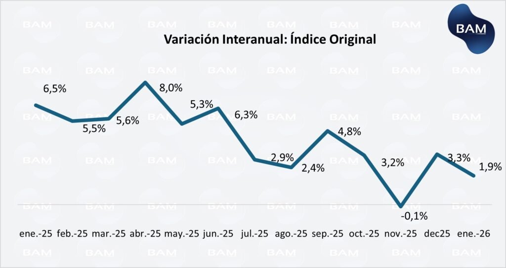 La actividad económica en Argentina mostró en enero de 2026 una señal positiva en términos agregados, con un crecimiento de 1,9% interanual, acompañado por una expansión de 0,4% mensual en la serie desestacionalizada y 0,3% en la tendencia-ciclo, lo que confirma una dinámica de recuperación en el margen.