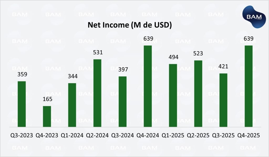 Desde el frente macro-financiero, el principal foco de riesgo se concentra en el negocio fintech. En economías como Argentina, donde se observa deterioro del ingreso real, aumento de la mora y caída del consumo, la expansión del crédito puede amplificar la sensibilidad del modelo. Si bien la compañía ha mostrado mejoras en sus modelos de riesgo, el crecimiento de la cartera introduce una exposición creciente al ciclo económico.