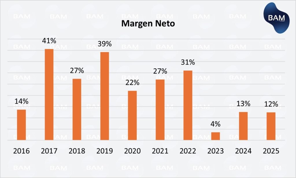 Es importante notar que el beneficio estimado para 2026 es ligeramente inferior al registrado en 2025, lo que indica que el mercado espera cierta moderación en la rentabilidad antes de una eventual recuperación más sólida.