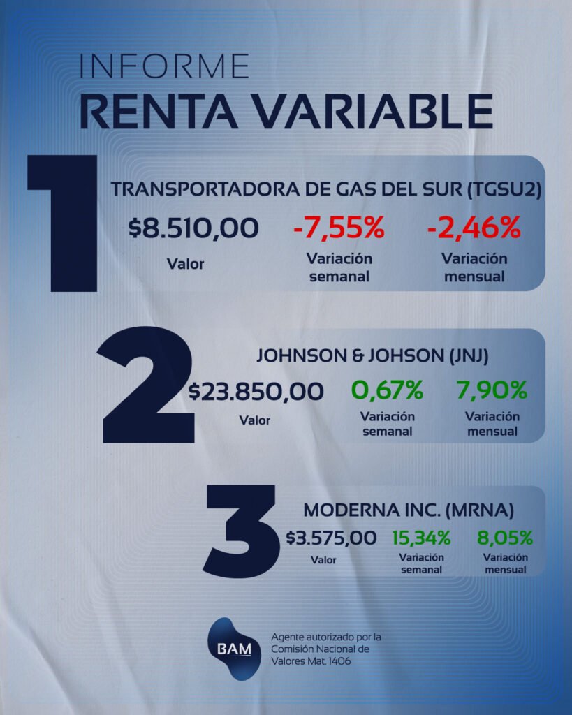 Actualización Diaria Instrumentos del Día Información detallada para inversores con suscripción activa Transportadora de Gas del Sur TGSU2 Cotización CEDEAR $8.510,00 -1,22% Análisis del Instrumento La acción cotiza a $8.510,00 , con una variación negativa diaria de -1,22% . En lo que va del año registra una variación de %…